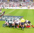 陣取りゲームであるラグビーは、楕円のボールを相手ゴールに付ける(トライする)ことで点が入る。