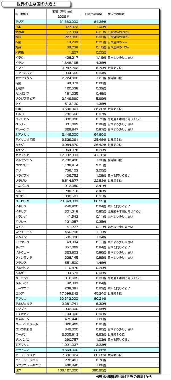 世界の中で日本の大きさ |