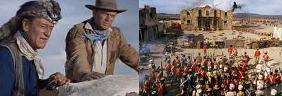 | 1836年、当時メキシコ領のテキサスの原野に、各国から多くの移民が入植していた。メキシコの独裁者サンタ・アナが土地没収と、重税を課す宣言をした。テキサス人は独立運動を起こし、サム・ヒューストン(リチャード・ブーン)が指揮者に選ばれた。サンタ・アナは討伐軍を派遣した。義勇軍はまだ組織が完全でなく、敵軍をサン・アントニオでくいとめ、時間をかせぐ必要があった。ヒューストン将軍はジェイムズ・ボウイ(リチャード・ウィドマーク)と大佐に任じ、サン・アントニオ近郊のアラモ砦の陣地構築を命じた。が、彼は酒びたりで仕事がはかどらず、将軍は後任に若い弁護士出身のトラヴィス大佐「ローレンス・ハーヴェイ」を送り、自分は義勇軍を募るため北方に出発した。厳格で貴族的なトラヴィスと、大地主で親分肌のボウイはことごとに対立した。テキサスの危機を聞いたデヴィ・クロケット(ジョン・ウェイン)は同士とともにサン・アントニオにやってきた。その夜、クロケットはメキシコの美女フラカ(リンダ・クリスタル)の難を救い、町の教会に武器弾薬が隠されていることを聞いた。彼は偶然知り合ったボウイと協力してこれを分捕った。クロケットとフラカは恋仲になった。砦の戦略的価値についてボウイとトラヴィスの意見が対立し、クロケットが仲に入ってまとめた。砦の完成前に、、サンタ・アナの軍隊がサン・アントニオに到着し、無条件降伏を要求した。トラヴィスは拒絶した。メキシコ軍は巨砲をもって砲撃を開始した。その夜、クロケットとボウイは決死隊を率いて巨砲破壊に成功した。サンタ・アナの主力軍が到着した。砦内の婦女子の立退きを勧告してきた。砦の男たちは感慨無量の面持で、退去する人々を見送った。ただディッキンスン大尉夫人だけは残留した。メキシコ軍の攻撃、砦の兵士の敢闘と、戦況は一進一退を続けた。ある晩、ボウイのところに愛妻が死んだ知らせがきた。トラヴィスは軍規違反と手紙をとりあげたが、真相を知って彼に詫びた。ボンハム大尉が援軍500がメキシコ軍に撃退されたという悲報をもたらした。ヒューストン将軍の義勇軍もだこない。ボウイやクロケットは砦で討死にするのに反対した。が、トラヴィスの死守の決意にうたれ、180名の兵士は砦を守ることになった。7000のメキシコ軍は物量を頼み、総攻撃を開始した。砦の兵士は次々に倒れ、トラヴィス、クロケット、ボウイの獅子奮尽の甲斐もなく、それぞれ凄烈な戦死を遂げた。3月6日--アラモ守備軍は全滅した。ただ1人ディッキンスン夫人が生き残った。サンタ・アナは夫人にロバを与え、砦の外に送りだした。守備隊の勇猛果敢な活躍は、夫人の口から人々に伝えられた…。 |