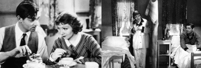 ニューヨークのさる大保険会社の一平社員バクスター、通称バド(ジャック・レモン)は、野望に燃える青年である。勿論出世のことである。その方法は、4人の課長にアパートの鍵を貸すだけで充分だった。4人はアパートをせっせと愛用し、バドの昇給にせっせと尽力した。そこに人事部長のシェルドレイク氏(フレッド・マクマレイ)も加わった。部長のよろめきの御相手は会社のエレベーター嬢フラン(シャーリー・マクレーン)。バドはこの丸ぽちゃで適当にグラマーのフランに片想いしていたので、少なからずショックだった。社員のクリスマス・パーティでフランのコンパクトを見たバドは、頭にくる。数日前バドのアパートに置き忘れられたので、バドが部長に返却申しあげたものと同一だったのである。酔ったバドが年増の金髪美人を連れてアパートに帰ると、そこでフランが自殺をはかっていた。離婚をした暁にはきっと君と…、と言うばかりで実行しないシェルドレイク氏の不実に絶望し、バド愛用の睡眠薬を全部飲んでしまったのだ。金髪美人を追い帰して、必死に看病するバドの心はフランを想う気持ちで一杯だった。翌朝、一大決心をしたバドは、部長にフランとの結婚を打ち明けようとする。その瞬間、部長は離婚が成立し、フランと結婚する旨をバドに宣告する。すべては後の祭りだった。人の気も知らない部長は、またもアパートの鍵の借用を申しこんできた。カンニン袋の緒を切ったバドは、辞表を叩きつけて会社を飛び出す。その夜、フランは部長とレストランへ。そこで今夜はアパートは使えない、と聞いたフランはハッと気がつく。バドの優しい想いと、自分を本当に愛しているのは誰か、ということを。部長を置き去りに、フランはバドのアパートの階段をかけ上がった。その耳にズドーンと銃声が。もしや自殺!? 部屋に転がり込んだフランの目に映ったのは、他の町での再出発をひとり淋しく祝ってシャンペンの栓を抜いたバドの姿だった。重役になれるかどうかは別問題。だが、バドの独身生活に栄光ある終わりが近いことは、確かなようである。メデタシ メデタシ。 |
