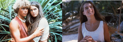南太平洋の広大な海上を一隻の帆船がゆったり進行していた。その船内にはアーサー(ウィリアム・ダニエルス)と8歳になる息子のリチャード(グレン・コーハン)、従妹で7歳のエミリーン(エルバ・ジョゼフスン)がいた。ある日、その船内が火事で突然燃え出し、リチャードとエミリーンは、アーサーとはぐれ、料理番のパディ(レオ・マッカーン)と3人だけがボートに乗った。恐ろしい一夜が明けて、目覚めてみると、エミリーンの目に別天地のような美しい島影がうつった。しかし、その島は無人島で、過去に漂流してきたらしい人々のガイコツと酒だるがころがっていた。2人はパディから毒のある木の実の見分け方、縄の結び方など生きるために必要なことを教わるが、ある朝、そのパディが事故で死に、リチャードたちは途方にくれた。それから数年後。女らしく成長したエミリーン(ブルック・シールズ)と逞しい青年になったリチャード(クリストファー・アトキンズ)は、エデンの園のアダムとイブのような毎日を送っていたが最近では思春期の徴候がそれぞれを悩まし始め、いっしょの部屋では生活できなくなっていた。エミリーンを部屋から追い出してからしばらくしてのある夜、リチャードは、島の反対側からきこえる不気味な音を耳にした。エミリーンが心配になって外に飛び出たリチャードは、そこで、恐ろしい光景を目にした。何人かの裸の男たちの生けにえの儀式だ。逃げるようにして戻る除中、彼は高熱に苦しんでいるエミリーンを見つけた。リチャードは彼女を必死で看病し、彼女が全快した時、初めて愛を意識し結ばれた。そしてエミリーンは妊娠し、苦しい出産を終え、子どもとの新しい生活がはじまった。それから間もなくして、息子たちを探しつづけていたアーサーの捜索船が島にやって来た。しかし2人はその船に背を向けた。ある日、3人のボートがサメに襲われ漂流し、食糧も水もなく死をまつばかりという不幸な状況に見まわれた。食べ物を欲しがった坊やは食べてはいけない赤い木の実を食べぐったりし、それを見て、リチャードが残りの実を2分した。親子が横たわるボートが大海原を漂っていく。そして、その遥かかなたには、帆船が姿を現わしていた。 |