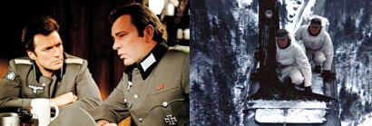 第2次大戦で連合軍が、ようやく反撃に移ろうとしている頃。鷲の城と呼ばれるドイツ情報本部に、アメリカのカーナビー将軍が捕われの身となっていた。彼を救出すべくジョン・スミス(リチャード・バートン)をはじめとする6人のイギリス軍情報部の諜報員と、アメリカのレンジャー部隊員シャファー中尉(クリント・イーストウッド)らが乗り込んだ。彼らは、情報部のターナー大佐の命令でこの大仕事に取り組んだのだ。だが何故かスミスは、ほかの部員とは内密に女性諜報部員メアリー(メアリー・ユーア)と連絡をとっていた。そしてドイツ兵士が集まる酒場に彼女を連れて行き、そこで働くスパイ仲間のミス・ハイディに引きあわせる。ハイディの口ききで、メアリーは鷲の城の中に仕事口を見つけて潜入する。その直後、酒場に一斉手入れがあり、スミスは逮捕される。情報が筒抜けであるので、二重スパイがいるのかもしれない…。やがてスミスは逃亡し、シャファーと2人で城内に潜入してメアリーと連絡し、カーナビー将軍が城外に連れ去られることを防ぐ。カーナビー将軍の取り調べが始まろうとしており、そこにはスミスらと一緒に来た3人のイギリスのスパイが捕らわれていた。そこへ現れたスミスは意外なことを言い出す。「このカーナビー将軍は偽物だ! そして、この3人のスパイたちも、実はイギリス側ではなくドイツ側だ!」。そしてスミスはメアリー、シャファーらとともに城内を破壊し、アメリカの俳優が扮している偽将軍を連れて脱出。やがてターナー大佐の飛行機で救出される。では何故スミスは、こんなことをしたのか?実は、かねがねターナー大佐の行動が怪しいと、にらんでいた男がいた。イギリス軍情報部のローランド海軍提督である。彼はそれを証明するために、偽将軍が捕らわれる状況を作り、救出作戦を立てた。そして救出部員の人選をターナーにまかせたのである。案の定、ターナーは裏切り者のスパイたちを作戦に加えたのだった。事実を知っていたのはスミス1人。間もなくして、ターナーは自決して果てるのだった。 |