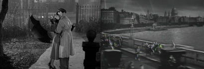 | 1940年燈火等制下のロンドン。ローイ・クローニン大佐はフランスへ赴任するのでウォータルー駅へ自動車を駆っている。駅に近くウォータルー橋にさしかかると大佐は車を降りる。橋は第1次大戦当時、爆破されて架橋し直したとはいえ、大佐には懐かしいのであろう。霧に霞むらんかんにもたれつつもの想いにふける。それは1917年、彼は25歳の陸軍大尉であった。スコットランドの旧家クローニン家に生まれ、フランスの戦野へ出征の途上、ロンドンで閑暇を楽しんでいるのだ。折しも空襲のサイレンが鳴り人々はウォータルー駅の避難所へ駆け出す。中の1人の女が何か落とした。大尉は手助けをして彼女と共に避難する。見れば美しい。まだ女学生と見える彼女はマイラと名乗った。オルガ・キローワ・バレー団のダンサーなのだ。ローイは彼女の舞台を見物すると、夜食に誘ったのであるが、厳格なキローワ女史はマイラに行くことを禁じた。しかし彼女は親友のキティの助けでぬけ出して大尉と会った。翌日彼はマイラを訪ねて結婚を申込み、その次の日式を挙げる約束が出来た。ところがその晩彼女は速達便を受取った。出発命令が下ったから直ぐ立つ、会いたい、というのである。マイラは飛出して駅へかけつけたが走り行く車上に立つローイの姿をチラと見ただけであった。劇場に急いでもどると、舞台にあなをあけたというのでキローワ女史はクビを申し渡し、マイラの弁護ををしたキティも諸共クビになった。貯蓄の全部を出した結婚衣装を買ったマイラは、ローイの母に会いに行った。その約束のカフェでマイラは不図見た新聞に、ローイ・クローニン大尉殉死の報を見て卒倒した。それから2ヵ月間マイラは病床にふした。就職口がないためにキティが夜ね女となっていることを、全快して彼女は初めて知って、その友情に泣かされた。そして今やローイ亡きあと何の生甲斐もなくなったマイラは、自らもキティと同じ道に陥った。それから1年、ウォータルー駅でマイラは凱旋して帰ったローイと会った。彼女が待っていてくれたと思って喜んだ彼は、彼女の身の上の変化に気がつかず、彼女をスコットランドの家へ伴った。マイラは愛が絶対である。その他のあらゆる事は関係ないと、自分自身に言い聞かせたが、もしも彼女の1年間の行状が知れれば、ローイの破滅となるに違いないと思い直して、ロンドンへひとり帰ってしまった。ローイはあとを追ったがマイラは身を隠した。マイラは思い出のウォータルー橋の上に、いつか来てしまっていた。何度考えても彼女は愛するローイに幸福を与えることは出来ないとしか思えない。思いつめたマイラは突進して来る軍用トラックの前に身を投げて最期をとげたのであった。 |
