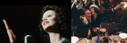 1915年、パリ。路上で歌う母に養われるエディット・ジョヴァンナ・ガションは、祖母が経営する娼館に預けられる。復員した父に引き取られ、大道芸をする父の手伝いをしながら人前で歌うことを覚えていったエディット(マリオン・コティヤール)は、1935年、人生の転機を迎える。パリ市内の名門クラブのオーナー、ルイ・ルプレ(ジェラール・ドパルデュー)にスカウトされ、エディット・ピアフという名で歌手デビューを果たすのだった。舞台は大成功し、ピアフは一躍時の人となるが、翌36年、ルプレは何者かに殺害される。後ろ盾を失い、一時は容疑者扱いもされたピアフを救ったのは、著名な作曲家レイモン・アッソだった。アッソから厳しい特訓を受けて復帰コンサートを開いたピアフは、みごとシャンソン界にカムバックする。歌手として栄華を極めたピアフは、1947年、ボクシングの世界チャンピオン、マルセル・セルダンと人生最大の恋に落ちる。セルダンには妻子がいたが、ふたりは急速に惹かれ合い、ピアフの歌も円熟味を増してゆく。しかし1949年、セルダンの乗った飛行機が墜落する。失意の中で、ピアフは代表作となる新曲『愛の賛歌』をステージで歌い、喝采を受ける。その後もピアフは名曲を歌い続ける一方で、酒やドラッグに溺れる破滅的な生活を送り、1963年、47歳の生涯を閉じるのだった。 |