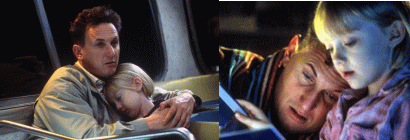 ターバックスで働く7歳の知能しか持っていない中年男サム(ショーン・ペン)は、ホームレスの女性が出産した自分の娘、ルーシー・ダイアモンド(ダコタ・ファニング)と幸せに暮らしていた。しかし7歳になったルーシーはサムの知的能力を追い抜いてしまい、サムは父親として養育能力がないという判断をソーシャル・ワーカーに下されてしまう。ルーシーは施設で保護されることになり、サムは失意にくれる。彼は法廷で闘う決意を固め、エリート弁護士のリタ(ミシェル・ファイファー)に依頼。自分が社会奉仕の仕事もできることを見せつけるために弁護を引き受けたリタだったが、どう考えてもサムには不利な裁判。彼の障害者の友人たちは裁判で普通の証言ができず、隣人アニー(ダイアン・ウィースト)も外出恐怖症を乗り越え証言台に立つのだが、相手の弁護士にやり込められて落ち込んでしまう。一方、サムとルーシーは親子の絆をますます深める。サムは結局、条件付きで親権は認められたものの、ルーシーは里親のランディ(ローラ・ダーン)らと一緒に暮らすことに。だがサムはその家の近所に引っ越して、ルーシーは毎日のように彼に会いにいく。2人の愛情の深さに気づいた周囲は、ようやくその親子関係を認めるのだった。 |