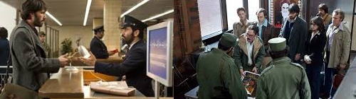 | イラン革命により、1979年2月にルーホッラー・ホメイニー率いる反体制勢力が、モハンマド・レザー・パフラヴィー国王をイランから放逐した。 しかしその後、国外に亡命したパフラヴィー元国王をアメリカが受け入れたことに反発したイスラム法学校の生徒を中心とした反米デモ隊が、同年11月にテヘランのアメリカ大使館を占拠し、52人のアメリカ人外交官が人質に取られた。だが、大使館が占拠される直前に6人のアメリカ人大使館員が大使館から脱出し、近くにあるカナダ大使公邸に匿われる。しかし6人が脱出したことを新政府(イスラーム革命評議会)は気づいていなかった。これを受けて、CIA秘密工作本部作戦支援部のトニー・メンデス(ベン・アフレック)は6人をイランから救出するため、『アルゴ』という架空のSF映画をでっち上げて、6人をそのロケハンのスタッフに身分偽変させ、秘密裏にテヘランから脱出させるという作戦をたてる。イランに渡り、6人の男女の大使館員に偽のパスポートを渡すトニー。映画スタッフとして実際にロケハンも行い、2日で帰国する予定だった。しかし、作戦中止を指示する上層部。アメリカ大統領が代わり、命令系統が滞ったのだ。イラン側の疑いを肌身に感じて、作成遂行を決心するトニー。CIAも協力して策を講じ、カーター新大統領から承認を取り付けた。予定通り空港に向かうトニーたち。空港の警備隊長はハリウッドに国際電話をかけて英語でトニーの身分を問い合わせる才人だったが、これもクリアした。搭乗後に身元がバレて駆け付ける兵士たち。だが、スイス航空の旅客機は無事に飛び立ち、イラン領空から離れた |