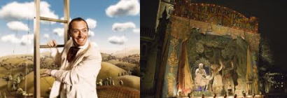 | 2007年、ロンドン。旅芸人の一座が今にも壊れそうな馬車で現れる。座長は年齢1000歳以上といわれるパルナサス博士(クリストファー・プラマー)。出し物は、人の心の中の欲望を具現化する“イマジナリウム”と呼ばれる鏡。博士に導かれて鏡を通り抜けた観客は、自分の願望を反映した幻想世界を体験できるのだ。だが、怪しげな出し物に興味を持つ客はなく、博士は何かに怯えていた。実は、かつて偉大な僧侶だった博士。悪魔のMr.ニック(トム・ウェイツ)にそそのかされて、1人の女性に恋をしたことからすべてが始まった。不死と若さを手に入れる代わりに、生まれた娘が16歳になった時、彼に差し出す約束をしてしまったのだ。そうとは知らない博士の娘ヴァレンティナ(リリー・コール)。ある日彼女は、殺されそうになっていた青年トニー(ヒース・レジャー)を助ける。記憶喪失の彼は一座に加わると、巧みな話術で女性客を惹きつけ、ヴァレンティナも彼に心奪われる。そして期限の3日前。Mr.ニックが現れ、賭けに勝てば娘を渡さなくてもいいと博士に告げる。その賭けとは、鏡の世界に入り込んだ客に、悪魔の欲望の道と節度ある博士の道を選択させて、先に5人を獲得した方が勝ちというものだった。事情を知ったトニーは、次々と女性客を鏡の中へ誘導。そして、記憶を取り戻し、自分を殺そうとした男たちの姿に気付いたトニーも鏡の中へ逃げ込む。鏡の中で客の願望を形にしたトニー(ジョニー・デップ)は、次々と客を博士の選択へ導く。しかし残り1人になったとき、トニー自身の願望を反映したトニー(ジュード・ロウ)が誘導に失敗。追っ手と悪魔に迫られ、一緒に鏡の中へと逃げ込むトニーとヴァレンティナ。すると、ヴァレンティナの願望を反映したトニー(コリン・ファレル)が彼の真の姿を現す…。期限まであとわずか、博士とヴァレンティナの運命は……? |