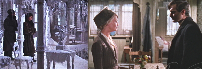 義兄のエフグラフ(アレック・ギネス)に初めて会ったのはその頃だった。義兄の勧めもあって、田舎で休養することにした彼は、旅の途中で白軍のスパイと間違えられ、赤軍の将校に尋問された。この将校は、戦死と報じられていたパーシャだった。彼は変わりはて、今や革命への狂信以外、何もない男になっていた。ラーラとの愛も再燃した田舎での生活、ジバゴにとっては幸せの日が続いたが、ある日突然、彼はパルチザンの1隊にとらえられた。妻に2人目の子供が生まれると知り、ラーラと別れる決心をした直後のことだ。しかし彼は脱走し、ラーラのもとに帰ったが、2人の関係を知った妻が、子供をつれて、パリに亡命したと告げられた。今や亡命者の夫となったジバゴと、すでに追放の身となっていたパーシャの妻ラーラの前に、コマロフスキーが現れた。彼は2人に危険がせまっていると再三話し、ついに身重のラーラをつれて極東に去った。8年後、ジバゴはモスクワの市街電車の中でラーラを見かけ必死に追ったが、かねてわずらっていた心臓発作で倒れ亡くなる。何年か過ぎた。エフグラフはダムの建築現場で働く若い娘(リタ・トゥシンハム)に出会った。彼女は、ジバゴとラーラの間にできた私生児だ。彼は両親のことを話してきかせ、ジバゴの詩集を贈りこう言った。「彼の仕事は党には容れられなかったが、詩を愛する人は彼を忘れない。彼ほど詩を愛した者はいなかった」と。 |