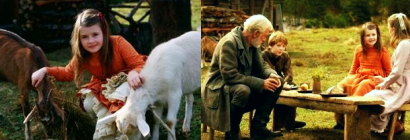 アルプスの山奥の小屋に、たった一人で暮らす老人アルム(マックス・フォン・シドー)。人を殺したという実しやかな噂が流れる彼だが、ある日、赤ん坊の時に両親を亡くした孫のハイジ(エマ・ビルジャー)を、彼女の叔母デーテ(ポーリン・マクリン)に押し付けられる。素直で元気でやさしいハイジに次第に心を開いていくアルム。ペーター(サミュエル・フレンド)のヤギ放牧について行ったハイジ。鳥や花、見るものすべてに驚きながら愉快に歩くハイジ。彼女が、ペーターの退屈な仕事を、楽しいピクニックに変えた。ペーターやペーターの家族、そしておじいさんを笑顔にしていくハイジ。そんな時、デーテ叔母さんが突然やってきて、ハイジを無理やり連れて行ってしまう。デーテは、フランクフルトの富豪の娘で足が不自由な娘クララ(ジェシカ・クラリッジ)の遊び相手を探してきたら、報酬を与えるといわれたのだ。つんと取り澄ました執事のロッテンマイヤー夫人(ジェラルディン・チャップリン)に迎えられるハイジ。彼女はハイジを頭と行儀の悪い子だと決め付ける。クララがハイジを気に入っても、クララの祖母ゼーゼマン夫人(ダイアナ・リグ)に教えられてハイジが読み書きできるようになっても、ロッテンマイヤー夫人の厳しい態度は変わらない。山へ帰りたいという願いがハイジの中でどんどん膨らんでいき、ノイローゼ気味になる。医者は山へ帰さないと危険だと診断。アルプスへハイジは帰ることになる。しばらくして、クララがハイジを訪ねにやってきた。おじいさんやペーターも入れて4人でピクニックに行くが、ハイジが谷に落ちそうになる。それを見て驚いたクララが立ち上がる。クララは歩行訓練をし、アルプスに来た父(ロバート・バサースト)を立って出迎えるのだった。
