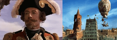 18世紀、トルコ軍占領下にあるドイツの海岸沿いの町。貧困と飢えに苦しむ人々であふれた崩れかけた城壁の中の廃墟と化した小さな町のロイヤル劇場の舞台に、バロン・ミュンヒハウゼン(ジョン・ネヴィル)は突然姿を現わした。彼は、トルコ軍は自分を探していると語り、なぜトルコ軍に追われるはめになったかを話し始めるが、あまりにも荒唐無稽で、誰にも相手にされない。落胆するバロンであったが、空想好きの10才の少女サリー(サラ・ポリー)に励まされ、トルコ軍をやっつける約束をする。そこで彼はまず最初に、かつて一緒に戦った不思議な力を持つ四人の仲間達を集めるために、絹の下着で作った巨大気球に乗ってサリーと共に旅を始めるのだった。頭と胴体が別の意志を持つ月の王のもとで世界一の足の速いバート・ホールド(エリック・アイドル)を、地底の神ヴァルカン(オリヴァー・リード)が支配する火山の国で怪力の持ち主アルブレヒト(ウィンストン・デニス)を、巨大魚の中で鉄砲の名手アドルファス(チャールズ・マッケオン)と、どんな遠くのどんな小さな音も聞こえ、すごい肺活量の持ち主グスタヴァス(ジャック・パーヴィス)をそれぞれ助け出すが、四人ともすっかり老け込んで昔の力を失っていた。またバロンの背後にも死神の影が常につきまとうようになっていた。六人は何とか町の海岸にたどりつくが、トルコ軍の攻撃は一層激しくなってきており、バロンは意を決し、トルコ国王に会見を求め、事の決着をつけようと試みるが、実は……。