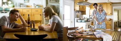 1950年代のコネチカット州。元陸軍兵のフランク・ウィーラー(レオナルド・ディカプリオ)はニューヨークの事務機会社ノックスに勤め、女優志願だったエイプリル(ケイト・ウィンスレット)と結婚した。夫妻は2人の子供に恵まれ、“レボリューショナリー・ロード”の閑静な住宅街で理想的な家庭を築いていた。ある日、エイプリルはアマチュア劇団の舞台に立つ。しかし最悪の出来に終わり、帰りの車中で夫に怒りをぶつける。フランクは30歳の誕生日に、タイピストのモーリーン(ゾエ・カザン)と食事に出かけ、自分が父と同じような人生を歩んでいることの不満を漏らす。2人は店を出ると、モーリーンの部屋へ行く。フランクが帰宅すると、彼の誕生日を祝う準備が整っていた。そしてエイプリルはフランクに、家族一緒にパリで暮らしたいと告げる。軍人時代、フランクはパリに駐在し、その街に魅了されていた。その思いを聞いたエイプリルも、パリに憧れを抱いていた。また彼女は、パリでは自分が働くので、フランクは好きなことをしていいと言う。フランクは移住を決意し、出発を秋と決める。フランクの同僚や、ウィーラー家の隣人・シェップ(デヴィッド・ハーバー)とミリー(キャスリン・ハーン)のキャンベル夫妻は、2人の計画に冷ややかな視線を送る。ある日、フランクたちに家を紹介した不動産屋のヘレン(キャシー・ベイツ)と夫ハワードが、精神を病み入院していた息子のジョン(マイケル・シャノン)を連れてくる。ジョンは、人生の空しさを乗り越えたいというフランクを冷めた目で見る。パリ行きの準備が進む中、ノックス社の取引先のバート(ジェイ・O・サンダース)がフランクを引き抜こうとする。フランクは新しいポストに心を動かされるが、移住の決意をバートに伝える。出発が近づいたある日、エイプリルが妊娠していることを告白する。それでもエイプリルは移住を強行しようとするが、フランクは決意が揺れ始める。 |