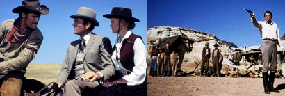 | 1963年11月22日、西ドイツのハンブルグ。久しぶりに母親の家を訪ねた帰り道、愛車を走らせていた新聞記者あがりのルポライター、ペーター・ミラー(ジョン・ヴォイト)は、突然入ってきたカーラジオの臨時ニュースに耳を傾けた。それはケネディ大統領暗殺のビッグ・ニュースだった。そのとき、1台の救急車が彼の車を追い越して行った。ミラーは反射的にその後を追った。それはルポライターとしての本能のようなものだった。事件はひとりの老人のガス自殺だった。現場にはミラーの学校友達だったハンブルグ警察のブラント警部補がいた。翌日、ミラーはブラントから老人が残した日記を入手した。老人はドイツ系ユダヤ人で、その日記はラトビアのリガにあったナチ収容所での地獄のような生活を記録したものだった。それを読むミラーの顔は青ざめ、額には油汗さえにじんでいた。老人は、リガ収容所長だったSS大尉ロシュマン(マキリミリアン・シェル)の非人道的な残虐さを呪い、いつか復讐しようとしていたが果たさず、絶望のうちに自ら命を絶ったのだ。ミラーはその老人に変わってその殺人鬼を捜し出す決心をした。彼はまず、老人の仲間を捜し出しそこから“オデッサ”という恐るべき組織の存在を知った。“オデッサ”とは、残虐の限りをつくした元ナチSS隊員で作った組織で、仲間を助けるためにさまざまな活動をしている秘密組織だった。ナチ狩りから逃れ、身元を偽って社会にもぐり込んでいる元ナチSS隊員を法廷にかけさせないための、強力な結束が“オデッサ”だった。“オデッサ”の組織はクモの糸のように各地に張りめぐらされ、その隊員の職業も裁判官、弁護士、警察と広範囲にわたっていた。数日後、ミラーが恋人のジギー(メアリー・タム)とXマスの買物のために地下鉄に乗ろうとしたとき、突然後から何者かに走ってくる電車に向かってつき落とされた。間一髪で命は助かったものの、こうなるとミラーとしても意地があった。やがて米資料センターでロシュマンの資料を発見した。調べを終えての帰り、ミラーは3人組の男に捕まってしまう。彼らは元SS隊員に復讐することを目的としたグループだった。ミラーが“オデッサ”を追求しているのを知り、彼に協力しようというのだ。早速ミラーを“オデッサ”に潜り込ますための工作が始まった。元ナチ隊員になるために病死した男コルブの出身証明書を盗み、“オデッサ”に接近した。元SS軍曹で警察に追われているという設定である。下級隊員に近づきその紹介で幹部に会うことになった。ミラーを見た幹部将校は矢つぎ早にSSについての質問を始めた。「収容所の真中に何が見えたか?」、一瞬ミラーは答えにつまった。「……空が見えました」。それを聞いた幹部将校の眼が鋭く光った。しかし、どうにか“オデッサ”に潜り込んだミラーはやっとのことでファイルを盗みだし、ロシュマンの足跡を掴むことができた。ある会議のあと、ロシュマンを尾行し、彼の屋敷に忍びこんだ。深夜、やっとのことでロシュマンと対峙することができた。そしてかつて自分の父がナチの収容所でロシュマンの手によって虐殺されたこと、そのあと、とり残された母と二人でどんなに苦しい目にあってきたかを語った。ついに復讐のときがやって来た。ミラーは怒りをこめて拳銃の引き金を引いた。しかし一人のロシュマンは死んだものの、“オデッサ”の組織が滅んだことではないことをミラーはよく知っていた。 | ヘンリー・トーマス(ジョン・ウェイン)は元北軍の大佐であった。しかし南北戦争終了と同時に牧童となり現在は自分の忠実な部下とインディアンの養子のブルー・ボーイ(ロマン・ゲブリエル)を連れて3000頭の馬をマキシミリアン皇帝に渡すべくメキシコに向かっていた。また、南軍に所属していたラングドン大佐(ロック・ハドソン)は、再起を計るべく、妻のマーガレット(リー・メリウェザー)、娘のシャーロット(メリッサ・ニューマン)、兄の未亡人アン(マリアン・マッカーゴ)、ビッグ・ジョージ(マーリン・オルセン)ら、総勢百余名を連れて、反乱軍と戦うマキシミリアン皇帝のもとへ向かった。ラングドン大佐の一行が、リオ・グランデ河を渡った場所にキャンプを張った時、山賊に襲われた。しかしトーマス大佐の事前の連絡とブルー・ボーイら、大佐の仲間の活躍で危機を脱することができた。この時、両大佐の間には、熱い男の血が通い合い、ブルー・ボーイとシャーロットの心には、淡い恋が芽生えた。そして、ラングドン大佐が招いた、独立際のパーティで、殴り合いという荒々しい友情表現を通して、一層彼らの心は固く結び合った。いよいよデュランゴが近づいて来た。トーマスはマキシミリアンの使者と会い、馬を渡す準備をした。ラングドンは、ロハス将軍(トニー・アギラー)と会見した。だが、彼は反乱軍の一味であり、一行は全員捕虜になってしまった。そして、ロハスは、トーマスが持っている馬を、自