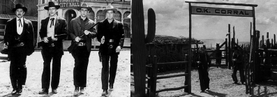 | 酒と賭博に身をもちくずした元歯科医ドク・ホリデイ(カーク・ダグラス)はフォート・グリフィンの町で3人組の殺し屋を返り討ちに倒したが、嫌われ者の彼は町民のリンチにかけられようとした。たまたま町に来たドッジ・シティの保安官ワイアット・アープ(バート・ランカスター)はドクの情婦ケイト(ジョー・ヴァン・フリート)の頼みで、その危機を救った。ワイアットはドッジ・シティに戻ったが、そこには余り有難くない出来事が待っていた。ワイアットの兄でトゥムストーンの保安官ヴァージルとクラントン一家との確執が激化してきたというのである。クラントンは殺し屋リンゴー・キッド(ジョン・アイランド)を味方にして機会を狙っていた。そんなところへドクがケイトを連れてドッジ・シティにきた。札つきのドクの出現に町の治安を思うワイアットは困惑するが、その上、ローラ(ロンダ・フレミング)という女が現れ御法度の賭博を始めるに及んではワイアットも捨てておけなかった。彼はローラを留置場へ入れた。が、彼女に心ひかれワイアットはドクの口添えもあって間もなく釈放した。ある日、3人の銀行強盗が町に向かったというのでワイアットは不在の代理保安官の代わりにドクを連れて行き、強盗どもを迎え撃った。が、やがてドクは不摂生が祟って前から病んでいた胸の病が悪化、そのため情婦ケイトはリンゴー・キットに鞍替えする始末となった。そんなある夜、ワイアットはローラと恋を囁いていたが、暴れ者シャンハイ・ピアース一味が酒場を荒らしていると聞き、そこへ駆けつけた。が多勢に無勢。そこへドクが現れ機先を制して一味を追出した。ドクはワイアットに、これで借りを返したぜと言ったが、2人は何か離れがたい友情に結ばれた。翌日、ワイアットは、ローラと結婚してカリフォルニアへ行こうと、保安官のバッジを返し旅支度をしていたが、そこへ舞込んだ一通の電報。兄のヴァージルがクラントン一家との危機を告げてきたのだ。ワイアットはローラを置いてトゥムストーンの町へ向かったが、後にはアリゾナへ行くというドクがついてきた。トゥムストーンでは、クラントン一家がアープ家の末弟ジムを射殺、遂に挑戦してきた。アープ家もこれに応じた。決闘の場所はOKコラール。時間は日の出の刻と決められた。クラントン側はアイク、フィン、ビリーのの3兄弟とマクローリー兄弟、それにリンゴー・キッドの6人。アープ側はヴァージル、モーガン、ワイアットの3兄弟である。決闘の夜が明けかかった。OKコラールに向かうアープ兄弟を追って、どうせ死ぬなら1人の友と一緒に、とドクが重病を押して駆けつけた。忽ち始まる決闘。数の劣勢をアープ側は腕と頭でおぎない、激しい戦いの後クラントン一家を撃ち倒した。リンゴーはドクに撃たれた。ワイアットは後を追ってきたローラとカリフォルニアへと旅立った。その2人をドクがいつまでも見送っていた。 出典:goo映画 ![]() |