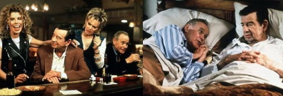 | シャルル・ボネ(ヒュー・グリフィス)は美術の愛好家であり収集家である。また美術品を美術館に寄附する篤志家でもある。さらに時々はコレクションの一部を競売に出す。彼のいうところによると、それらの美術品は彼の父が買い集めた遺品だというが、誰もコレクションを見た人はいない。実をいえば、ボネは偽作の天才なのだ。ブローニュの森の近くにある彼の大邸宅内には、秘密のアトリエがあって、彼は自ら偽作をしているのだ。彼には1人娘のニコル(オードリー・ヘップバーン)があるが、彼女は父親の仕事を止めさせようと、いつも胸を痛めている。パリ一の美術商ド・ソルネ(シャルル・ボワイエ)は、得意客のボネが、どうしてあんなにコレクションがあるのか、いつも不思議に思っていた。もしかするとあの傑作はニセモノでは……というわけで、私立探偵シモン・デルモット(ピーター・オトゥール)に万事を頼んだ。ところがヘマなシモンはニコルに見つかり、苦しまぎれに自分は泥棒だ、といったが、何故かニコルは彼を警察に引き渡さなかった。ボネが所有している美術品中の逸品はチェリーニのビーナスだが、彼はそれを美術館に出品するという。しかし、もし偽作だと分かったら大変と、ニコルはシモンに頼んでまんまと盗み出してしまった。ここにリーランド(イーライ・ウォラック)というアメリカの美術収集家がいた。彼はビーナス欲しさに政略結婚を考え、ニコルと婚約を結んだ。そしてド・ソルネのあっせんでシモンと会見したが、シモンは3つの条件を出した。第1は売価が100万ドル、第2はすぐに国外へ持ち出すこと、第3はニコルとの婚約を取り消すことー。ビーナスさえ手に入ればと、リーランドはすぐにこの条件を承知。うまく100万ドルをせしめたシモンは、いつしか恋仲になったニコルと駆け落ちしてしまった。 | テレビのニュース記者フェリックス(ジャック・レモン)は愛妻と離婚の憂き目。悲観した彼は自殺をすら考えた。しかし、そんなフェリックスを救ったのは、オスカー(ウォルター・マッソー)ほか4人のポーカー仲間だった。とりわけスポーツ記者のオスカーは、自分も離婚の経験者だけに、フェリックスを心から慰め、アパートに同居させることにした。こうして、やもめ同士の奇妙な同居生活が始まった。彼らはともに40男。だが、その性格は、正反対だ。フェリックスの方は、掃除、洗濯、炊事と、女顔負けの腕のよさ。そのうえ、異常なくらいの清潔野郎で、部屋の整理整頓はもとより、チリひとつ落ちていても、気になるという男。ずぼらなオスカーは、始めのうちこそ黙っていたが、次第に彼の態度にがまんならなくなった。そしてポーカー仲間たちも、これでは落ち着かないと、敬遠しはじめた。そこでオスカーは心機一転とばかり、同じアパートに住むピジョン姉妹を招待し、陽気な一夜を過ごすことを提案。未亡人と離婚経験者の姉妹は嬉々としてやって来た。フェリックスは自慢の料理を作り、まずは歓待したのだが、その料理を出す前に、自らの悲しい離婚の話を始めてしまった。妻や子の写真を取り出し、しみじみと語り、ついに泣き出す始末。それをみた姉妹も、彼の、ちょっと現代離れしたやさしさに共鳴し、一緒に泣き出してしまった。3人の涙合戦。なんともやり切れないのはオスカーである。そしてついに数日後、2人の男は喧嘩別れ、フェリックスは出ていった。だが人の好いオスカーは急に心配になった--もしかしたら、今度は本当に自殺するのではないかと。だが心配は無用。なんとフェリックスは、ピジョン姉妹と一緒に現れ、彼女たちと暮らすという。荷物を持って意気揚々と引きあげるフェリックス。残されたオスカーは、集ったポーカー仲間たちに言う--ここは俺の家だ。床にタバコを捨てないでくれ!どうやらフェリックスの清潔ぶりが移ったようだ。彼との和解も遠い日ではあるまい。 | ||||||||||||||||||||||||||||