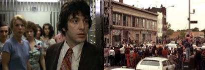 | 1972年8月22日。ニューヨークは36度といううだるような暑さだった。その日の2時57分、ブルックリン三番街のチェイス・マンハッタン銀行支店に3人の強盗が押し入った。強盗は10分もあれば済むはずだった。だが3人の1人、ロビーがおじけづき、仲間をぬけた。しかし、ソニー(アル・パチーノ)とサル(ジョン・カザール)にとってそれ以上に予想外だったのは、銀行の収入金が既に本社に送られた後だったことだ。残された1100ドルの金を前に途方に暮れるソニーのもとに突然、警察から電話が入った。銀行は完全に包囲されているから、武器を捨てて出てこいというのだ。事態は急変した。警官とFBI捜査官250人を超す大包囲網の中で、追いつめられた平凡な2人の男は牙をむいた。銀行員9人を人質としたのだ。3時10分を少し廻ったところだ。つめかけるヤジ馬、報道陣の中でモレッティ刑事(チャールズ・ダーニング)の必死の説得が行われた。だが時間は無駄に流れていった。ソニーたちの説得に昇進をかけるモレッティの心をよそに、すべて2人の言いなりになければならない警察側とTV報道のインタビューに応える狂人側という状態で、次第にソニーとサルは群衆たちから英雄視され始めた。周りがどっぷり夕闇につかった頃、銀行内では犯人と人質たちとの間に奇妙な連帯感のようなものが芽ばえてきた。ついに今まで静観していたFBIのシェルドン(ジェームズ・ブロデリック)が動き出した。モレッティとは対照的に冷静な態度でソニーに近づき、犯罪者の心理を見すかしたように優しく、そして時には力強い口調でソニーに投降を勧めてきた。ソニーとしてもこの説得に心が動かなかったわけではなかったが、一途に成功か死かのいずれかしかないと信じ込んでいるサルを裏切ることは出来なかった。ソニーの母と妻と愛人たちによる説得工作もすべて失敗に終わった警察側は、ついにソニーたちの要求通り国外逃亡用のジェット機を用意せざるをえなかった。銀行から空港まで、息づまるような緊張に充ちた移動が開始される。警官が運転するマイクロバスが空港に到着し、拳銃を持ったサルが降りようとしたとき、一瞬のスキを狙って警官が発砲した銃弾はサルのひたいを撃ち抜いた。−−そして現在、捕えられたソニーは20年の刑を受け、服役中である。 | 大勢のダンサーたちがオーディションを受けに集まるブロードウェイの一角。ジャズのリズムに乗って、ステージの上をきたえられた肉体と肉声が躍動する。その彼らの動きを厳しい表情で見守る1人の男がいる。ブロードウェイの演出家・映画監督として知られるジョー・ギデオン(ロイ・シャイダー)だ。ジョーは、幼ない頃からボードビル劇場でタップを踏んでいた根っからのショー・ビジネスマンだ。その毎日は、酒と女とヘビースモーキングとステージに明け暮れ、目ざめとともにシャワーを浴び、ビバルディのレコードを聞きながら多量の薬と目薬を保給するというのが習慣になっていた。そして、鏡に向って、自分に語りかけるのだ。“イッツ・ショー・タイム”と。今、彼が手がけているショーの主演女優は、彼の別れた妻オードリー(リランド・パーマー)で、ふたりの間にはミシェル(エルツェベット・フォルディ)という娘がいた。ミシェルにバレエのレッスンをしてやる時が、ジョーにとっての唯一の時だった。この新作のショーは、ジョーの同棲中の女性ケイト(アン・ラインキング)が出るなど、彼の人生のすべてのものを盛り込んだ、集大成ともいえるものだ。新しいアイデアが浮かばず苦悩することもしばしばあるが、プロデューサーたちが眉をしかめるようなセクシーな振りつけをつけて満足する時もあった。そんなある日、ジョーは、不規則な生活と過労のため倒れてしまった。心臓の切開手術を受けながら、ジョーは無意識のうちに自分の人生を回顧していた。そして、かつて出会ったさまざまな人々の前でジョーの過去が一大ミュージカルとなって繰り広げられていく。一方、ジョーの生活に、いつも影のようにつきまとう女性がいた。花嫁衣裳をまとった浮気なショーガールを装う美しい天使(ジェシカ・ラング)だ。彼女はまた死の象徴として、ジョーの告白を聞き、暖かい愛の力で彼を包みこんでいた。死と向かいあった病床で、ジョーは、ショーヘの未練やさまざまな人間たちとの関わりを考える。いま彼は、自分の死すらもショーとして演出していたのだ。そんな彼を祝福するかのように、エセル・マーマンが歌う“ショーほど素敵な商売はない”のメロディが響くのだった。 | ||||||||||||||||||||||||||||