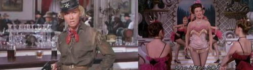 | 1870年代、デドウッドという小さな町に、厄病神と仇名される射撃のうまいお転婆娘ジェーン(ドリス・デイ)がいた。彼女の親友ワイルド・ビル・ヒコック(ハワード・キール)は、女らしくないジェーンに対し単なる友だちとしてつき合っていた。ジェーンは内心ヒコックを愛していたが、彼が少しも反応を示さないのでギルマーティン中尉に近づいて行った。ジェーンは喜劇劇スターのアデレイド・アダムズを連れて来ると町の人に約束し、シカゴへ行ったが、アダムズの女中ケティ(アリン・アン・マクレリー)を本物とまちがえてしまった。かねて舞台に立ちたいと思っていたケティは、誘われるまま本物になりすまして町に乗りこんで来た。だがウソがばれ、怒った町の人たちはケティの出演する酒場を壊そうとした。ジェーンは、ケティにチャンスを与えるよう一同を説き伏せた。ケティの歌と踊りは素晴らしく、その上ギルマーティン大尉が彼女に参ったので事は面倒になった。しかし、ケティがジェーンに女らしく振舞うことをすすめたので、ジェーンは見違える程美しい娘になり、ヒコックも彼女を見直し、ヒコックとジェーン、ギルマーティンとケティの2組の新夫婦が出来上った。 |