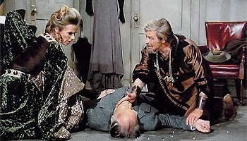 落ち目の俳優であるニックとリリアン夫妻は、プロデューサーのサー・ロジャーをだまして舞台劇「マクベス」主演の座を手に入れた。それを知ったサー・ロジャーは初日前夜に二人の楽屋で怒りをあらわにする。もみあいの末、彼を殺してしまった二人は、遺体を彼の屋敷へ運び、階段から落ちたように偽装した。地元警察は事故と判断するが、ロンドン警視庁へ視察に訪れていたコロンボは疑問を持つ。『コロンボ』初の海外ロケ作品。バッキンガム宮殿にタワーブリッジ、ビックベンなどロンドンおなじみの風景が登場。オナー・ブラックマンやジョン・ウィリアムズ、ウィルフリッド・ハイド=ホワイトなどイギリスの俳優陣が顔をそろえている。 |