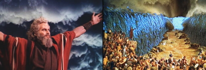 エジプト王ラメシス一世は、新しく生まれるヘブライの男子をことごとく殺すという命を発した。生まれたモーゼ(チャールトン・へストン)も母親の手でナイルの大河へゆりかごに隠されて流された。だが幸運にも小さな箱船は王女の足もとへただよい着いた。王女はその赤児をあわれに思い、引きとって立派に育てた。成長したモーゼがエジプト王子として勢力を得て来た頃、宮廷には彼のほかに実の王子ラメシス(ユル・ブリンナー)が権力をふるっていた。2人は王位と王女ネフレテリ(アン・バクスター)の争奪を始める。ネフレテリは“世襲王女”であったから、王座を継ぐものは彼女と結婚しなければならないからだ。ある日、モーゼは奴隷であるヘブライ人が重労働を課せられているのを見、そして1人のエジプト人が、ヘブライ人を打ちすえたところを目撃した。だが、この現場を同胞を食いものにしている奴隷頭デイサン(エドワート・G・ロビンソン)が見ていた。これがラメシスの耳に入り、ヘブライ人であることが暴露されたモーゼは砂漠に追放された。荒野をさまようモーゼを救ったのは、ジェスローだった。やがてモーゼはジェスローの長女セフォラ(イヴォンヌ・デ・カーロ)と結婚した。彼はここで平和な生活を送っていたが、ある日シナイ山で神の声を聞いた。モーゼは解放者に選ばれたのだ。ここにモーゼとラメシスの争闘が始まった。疫病がエジプトを襲った。数千の奴隷は脱出して紅海の畔までたどり着いた。ラメシスは戦車をかり出した。だが、モーゼがひとたび叫ぶと、焔が立ちラメシスの軍勢を防いだ。海は陸地となり、水は2つにわれるという奇跡が起こったのだ。エジプトの軍勢は海底に没した。勝利者モーゼは、シナイ山頂に立ち、神の指が褐色の岩に十戒を1つずつきざんで行くたびに、顔を聖なる光に輝かせ、耳にすさまじい雷鳴を聞いていた。デイサンは、最後の力をふりしぼって人々をモーゼに立ち向かわせようとした。が、モーゼが投げた石の板がくだけ、火が燃え上がり悪しき者を焼きつくした。やがて、人々はヨルダン河の畔のネボ山の麓にたどりついた。モーゼは唯1人、神の前に行くべくネボの山を登っていった。