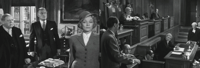 病癒えたロンドン法曹界の長老ウィルフリッド卿(チャールズ・ロートン)は、看護婦に付き添われて事務所に帰る。が、酒、煙草、そして得意の刑事事件もダメだといわれ、大いにクサっていた。そこへ弁護士仲間が依頼人を伴って現われ、弁護士の煙草ほしさに部屋に招じ入れ、話を聞くうちに卿は俄然興味がわいてきた。ヴォール(タイロン・パワー)という依頼人は、知り合いの富裕な未亡人が殺されたことから、嫌疑が自分にかかっていること。自分の潔白は妻クリスチーネ(マレーネ・ディートリッヒ)が保証する、と述べて卿に弁護を頼む。だが円満な夫婦の間の証言など、法廷で取り上げられるわけがない。他にヴォールの無実を証す証人がないとすれば、殺す動機のない点を主張しなければならない。その点ヴォールは、自分の発明品に少し投資してもらいたいと思っていた、と述べる。ところがこの時、新聞で未亡人の全財産がヴォールに遺されていたことが判り、ヴォールの立場は不利になる。やがて事務所にスコットランド・ヤードの車が停まり、ヴォールは逮捕される。その後ヴォールの妻クリスチーネが来訪。ヴォールのアリバイを証言するが、その言葉はなぜか曖昧であった。この2人は、ヴォールが戦時中ドイツに進駐していた頃、彼女を助けことから結ばれた仲である。ウィルフリッド卿は看護婦や周囲の心配をよそに、弁護に立つことになった。公判の日、中央刑事裁判所の傍聴席は、満員だった。検事の証人喚問、ウィルフリッドの反対訊問など、事態は黒白いずれとも定めかねる展開になる。その時検事側証人として、クリスチーネが出廷。自分には前夫があり、ヴォールとの結婚は正式のものではないと証言、しかも未亡人殺しを告白したという、驚くべき証言をする。ここにおいてヴォールの有罪は確定したかに見えた。その夜、ウィルフリッド卿は見知らぬ夜の女に呼び出され、クリスチーネが夫を陥れようとした証拠の手紙を買わされる。次の公判の日、ウィルフリッドはこの手紙を重大な証拠として出廷、クリスチーネの仮面を剥ぐ。一転、ヴォールは無罪になった。だが、何か納得のいかないウィルフリッドの前に、クリスチーネが現われた。……事件は落着したのではなかったのか? ウィルフリッド卿の予感は、不幸にも的中したようである。何故なら、クリスチーネは彼に意外な事実を語ったのだ。意外な事実? だが、それに引き続いて、彼女にとっても、意外な事実が明らかになったのだ。……ここで、この事件の種明しをすることは、差し控えることにする。その方がこれから御覧になる人には、かえって親切な紹介の仕方だと思うし、結末を洩らさないでくださいという製作者の要望に、添うことであるからだ。 |