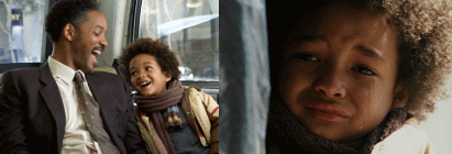 五歳の息子・クリストファー(ジェイデン・クリストファー・サイア・スミス)と妻・リンダ(タンディ・ニュートン)とともにサンフランシスコで生活するクリス(ウィル・スミス)。生活は困窮していたが、クリスは医療機器のセールスに励み、生活を立て直そうと必死で働いた。しかし家賃の支払いすらままならず、一日16時間のパート労働を続けていたリンダも限界に達してしまう。息子を連れて出て行ってしまうリンダ。28歳になるまで実の父と会った事すらなかったクリスは、息子に自分と同じ思いをさせまいと心に誓い、彼を自分のもとに引き取る。しかし生活は悪化の一途を辿り、父子は医療機器の在庫を抱えてモーテル暮らしを強いられる。そんなある日、クリスは街中で真っ赤なフェラーリを颯爽と乗り付けた高級スーツの男を見かけ、声をかけた。「どうすればあなたみたいに成れるんだい?」。男は株の仲介人だった。聞けば学歴がなくとも証券会社の養成コースを受講すれば正社員採用の道が開けるというのだ。クリスは受講者募集の口を見つけ、定員に滑り込む為の猛烈アピールを開始する。彼の特技であるルービックキューブの技術に関心した採用者によって、養成コースの受講に成功するクリス。無給で六ヶ月の実地研修を続けた末、採用されるのは20人の内のたった一人だと告げられる。厳しい道ではあったが、今の生活から愛息子とともに抜け出す為にはこれしか無いと決め、クリスは勉強と顧客開拓に励んだ。一方生活は益々困窮し、二人は、ついにホームレスにまで身を落とす。手元に残っている金目の物は、壊れてしまった一台の医療機器だけだった。駅のトイレや教会の宿泊斡旋所などを渡り歩き、疲弊しつつもユーモアを絶やさない二人。そしてクリスは六ヶ月の研修期間を乗り切り、20分の1の採用者の資格をも見事に勝ち得た。未来が開けた喜びを噛み締めながら、クリスは息子をむかえに託児所へと急ぐのだった。 |