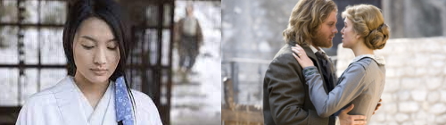 と、ざっと内容を説明するだけでも、日本、カナダ、イタリア合作によるこの映画が、かなりのスケールの大作であると想像されるだろう。だけど本作から僕らが受ける印象は、まさに絹の肌触りのように細やかな“掌編”といった趣で、昨今の2時間を軽く超える大作ラッシュのなかでむしろ新鮮な感動を覚える。たとえばフランスから日本への当時の移動は大冒険だったが、最初の旅でその行程が簡単に示されるだけで、その後の移動については意外なほどあっさりと描写され、まるでフランスと日本が同様の寒気に支配された地続きの2つの場所であると思えるほどだ。そう、この映画の魅力は、さまざまな要素をコンパクトに伝える手際良さであり、これもまた大作とは異質な方向からの映画ならではの達成なのだ。日本の描写があまりに現実離れしている……との疑問も当然日本の観客のなかで芽生えるだろう。だけど驚きの結末まで見届けた僕らは、ここで描かれる日本がもとより“幻影”であったと理解できるはずだ。 |