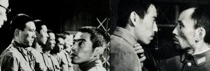 週番士官の金入れを盗んだというかどで、二年間服役していた木谷一等兵は、敗戦の前年の冬に大坂の原隊に帰っていた。彼は入隊後二年目にすぐ入獄したのですでに四年兵だったが、中隊には同年兵は全くおらず、出むかえに来た立澤准尉も班長の吉田、大住軍曹も全く見覚えのない人々であった。部隊の様子はすっかり変わってた。木谷に対する班内の反応はさまざまであった。彼は名目上病院帰りとなっていたが、何もせず寝台の上に坐ったきりの彼は古年兵達の反感と疑惑をつのらせた。木谷が金入れをとったのは偶然であった。しかし被害者の林中尉は当時反対派の中堀中尉と経理委員の地位を争って居り、木谷は中堀派と思いこまれた事から林中尉の策動によって事件は拡大され、木谷の愛人山海樓の娼妓花枝のもとから押収された木谷の手紙の一寸した事も反軍的なものとして、一方的に審理は進められたのだった。兵隊達が唯一の楽しみにしている外出の日、外出の出来なかった木谷は班内でただ一人彼に好意をもっている曾田一等兵に軍隊のこうした出鱈目さを語るのだった。班内にはさまざまな人間がうごめいている。地野上等兵の獣性、補充兵達の猥褻な自慰、安西初年兵のエゴイズム。事務室要員の曾田は軍隊を「真空地帯」と呼んでいた。ここでは人間は強い圧力で人間らしさをふるいとられて一個の兵隊--真空管となるからだ。或日、野戦行十五名を出せという命令が出た。木谷は選外にあったが、曾田は陣営具倉庫で、金子班千葉県有為が隣室でしつこく木谷を野戦行きに廻す様に准尉に頼んでいるのを聞き驚いた。金子班長はあの事件の時中堀派の一人として木谷の面倒をみたのだが、今は木谷との関わり合いがうるさったのだ。木谷が監獄帰りと聞こえがしに云う上等兵達の言葉に木谷は猛然と踊りかかっていった。木谷を監獄帰りにさせた真空地帯をぶちこわそうとする憎しみに燃えた鉄拳が彼等の頬に飛んだそれから木谷は最後の力をふりしぼって林中尉を探しまわった。彼に不利な証言をした林中尉に野戦行きの前に会わねば死んでも死にきれなかった。ついに二中隊の舎前で彼を発見した。彼の必死の弁解に対し木谷の拳骨は頬にとんだ。やがて、転属者が戦地に行く日が来た。花枝の写真を懐に抱いて船上の人となった木谷に、ようやく自分をきりきり舞いをさせた軍隊の機構、その実態のいくらかがわかりかけてきた。見知らぬ死の戦場へとおもむく乗組員達の捨てばちな野卑な歌声が隣から流れてくる。しかし木谷の眼からはもはや涙も流れなかった。 | ||||||||||||||||||||||||||||
