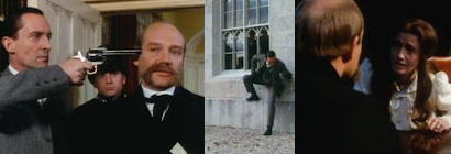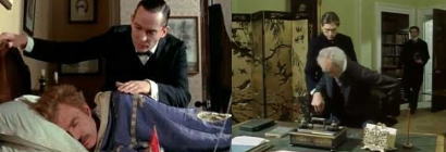 ホームズは、愛想の良い笑顔と蛇のような心で人の心につけ込む恐喝王に関する事件を、老婦人から依頼される。クロフト子爵に絡む醜聞事件で、兄ジョージが売春婦とベッドに一緒にいたところを第三者に発見されて破滅に追い込まれたのだったが、弟のエドワードが兄を裏切った従卒ヴァイクの顔に向けて拳銃を発射、ヴァイクは裁判の後、行方を消した。兄の残された詩集から、「CAM Devil(悪魔 きたる)」の書き残しを手がかりに、ホームズ達は捜査を開始する。一方、婚約を控えていたドーキング大佐が騎兵隊司令部でピストル自殺を起こした。遺書の中にホームズ宛の手紙を見つけたレストレード警部は、221Bに赴き、事情を説明するようホームズに迫る。恐喝事件であることだけを示唆したホームズは、封筒の中から、美術商チャールズ・オウガスタス・ミルヴァートンの名刺を手に入れる。敵地探索を開始したホームズは配管工に化けて、ハムステッドにあるミルヴァートンの屋敷の中に潜り込み、仲睦まじくなったメイドから、屋敷内の様子を色々と聞き出す事に成功する。同じ頃、ミルヴァートンは次なる獲物を狙っていた。レディ・エヴァ・ブラックウェルで、ドーヴァーコート公爵との結婚を控えている身だった。エヴァはホームズの元に相談に訪れる。過去のラブレターを元にミルヴァートンから多額の金をゆすられていて、支払い猶予は公爵主催の婚礼を祝う舞踏会の日で、あと4日しかなかった。手紙を盗んだのはメイドのリリーで、友人シャーロットとドーキング大佐の破局を目の当たりにして思いついたのだろうという。エヴァの代理人として、直接ミルヴァートンを221Bに呼び出し、7000ポンドの値切り交渉を装って手紙を奪おうとするが、失敗。交渉中にもミルヴァートンの馬車が、恨みを買う者から斧で傷つけられる。諦めたホームズはミルヴァートンの屋敷に赴き、7000ポンドは支払うが、14日は舞踏会があるため、15日に支払いを猶予して欲しいと頼む。その頃221Bにはエヴァの叔母レディ・ダイアナ・スウィンステッドが訪れて、エヴァをゆすっている者の名前をワトスンから聞き出していた。別れ際に「あの男は黙らせるべきです」というセリフを吐いて立ち去る。手紙を取り戻すため、ミルヴァートンの屋敷に押し入ることを打ち明けるホームズ。ワトスンは頑なに反対するが、既に14日の舞踏会にミルヴァートンを誘い出す手筈を整えていた。渋々折れたワトスンは、ホームズと共に、ハムステッドのミルヴァートンの屋敷へと忍び込む。そこに現れたのは・・・・・・。 |