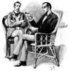 アデレード・サベッジがホームズの元に相談に訪れる。夫のヴィクター・サベッジはオックスフォード・ロンバード銀行の重役だったが、詩作に熱中するあまり、アヘン窟に通うようになり、仕事への情熱が失せ、アヘン中毒になりかけていた。従兄のカルヴァートン・スミスが唆したと疑っていたアデレードは、ホームズとワトスンを、一同が会する晩餐会に招待する。ところが、晩餐会でのカーペット滑りの余興中に、ヴィクター・サベッジが倒れて数日後に絶命してしまう。アマチュア病理学者のカルヴァートン・スミスに寄ると死因はスマトラ病で、ロザーハイズのアヘン窟で感染したのではないかという。ヴィクター・サベッジの死で屋敷を含む遺産の全ては、遺言により従兄のカルヴァートン・スミスのものとなり、アデレード未亡人は屋敷を追い出されることになった。アデレードの依頼を受けて調査に乗り出したホームズは、衆目の集まる中、カルヴァートン・スミスに対して医学界から追放されるだろうと高らかに宣言する。その後、カーライルからローデシア・タバコが送られてくるが、血相を変えたハドスン婦人に呼ばれてワトスンがベーカー街の下宿先を訪れると、ホームズが同じスマトラ病に冒されていた。治療できるのは、専門家であるスミスしかいないから彼を呼ぶようワトスンに懇願するホームズ。血相を変えたワトスンに圧されてベーカー街221Bに訪れたカルヴァートン・スミスは、ヴィクター・サヴェッジの死の真相を、瀕死の探偵に耳打ちする。 |