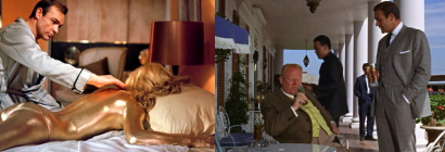 Knox)上空で、プッシー(報酬でバハマ移住を計画)達がミスター・ミッドナイトより手に入れたデルタ9(殺人ガス)を(「15分で消滅するが24時間失神する神経ガス」と騙され)散布。その後、フォート・ノックスに入り核爆弾で金塊を核汚染(58年間汚染される)。それにより、西側の金の株価は下落。ゴールドフィンガーが保有している金の株価を上昇させる、というものであった。グランド・スラム計画に乗らなかったシンジケートのボスの一人ソーローは、オッド・ジョブに殺され車(リンカーン・コンチネンタル)ごとスクラップにされてしまった。ボンドは、馬小屋でプッシー・ガロアと親密になって彼女を改心させ、CIAに連絡させる一方、散布するガスを詰め替えさせた。ゴールドフィンガーの計画は失敗し、彼はボンド、オッド・ジョブ、キッシュを金庫に閉じこめ逃走した。キッシュは核爆弾を停止しようとするが、オッド・ジョブに1階から地下3階(12m)に落とされて死ぬ。ボンドはオッド・ジョブと格闘して感電死させ、7秒手前で核爆弾を停止させた。ボンドは、アメリカ大統領に招待され飛行機に乗る。だが、ゴールドフィンガーが現れて争い、彼は銃撃で割れた窓から空中に吸い出された。ボンドとプッシーは、パラシュートで脱出し助かるのであった。 |