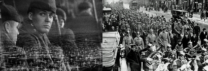 | 欧州大戦に於て西部戦線の戦いたけなわなる頃。ドイツのある町の学校の窓下を戦場に向かう大部隊が通過しつつある。そこの教室では老教師カントレックが生徒達に愛国主義を吹き込んでいる。進軍の雑音と教師の弁舌に若い生徒達の血潮は燃えて彼らは直ちに出征を志願する。ポール、アルバート、ケムメリッヒ、ミュラー、ベーム、ピーター達がその中に数えられる。入隊した第一夜、かつて町の郵便配達であったヒンメルストスは曹長として彼らの前に立つ。そして苛酷な彼の訓練の後若者等は戦場へ送り出される。戦線後部の輸送所に於てポール達は最初の戦慄を感じる。ポール達は老兵に食物を求めてかえって彼らに嘲笑される。古参兵中の腕利きカチンスキーは豚を盗んで来て彼らの前に食物を供する。かくて彼らは初めて戦場へ身を晒す。それはカチンスキーに導かれた鉄条網張りの任務である。天空と大地とが厳しい砲火に轟き渡っている中に無残に碎かれてゆく若者達の英雄主義。ついに塹壕の中でベームは砲音によってヒステリーになる。ケムメリッヒもまた狂って飛び出したため脚部を打ち砕かれる。こうして彼らは幾日かを塹壕の中で仏軍の来襲を待たされるのである。糧秣車の前で兵士は分配を待っている。コックは150人分を用意しながら今は80名に減じた彼らに食糧を与えることに勿体をつける。ポール達は病床のケムメリッヒに長靴を所望してかえってケムメリッヒに障害者となったことを知らせ彼を狂乱させる。やがてポールはケムメリッヒの死んでいく態を目前に見せつけられる。教会付近の激戦でポールは腕を傷め爆破のために掘られた穴の中に砲火を避けたがその時飛び込んで来た仏兵を突き刺してしまう。終夜ポールは死に行く仏兵の傍らにあって戦争に対する疑惑と深い悔恨に苦しめられる。陣地へ戻ったポールは僚友と運河の流れで体を洗う。その時に通りかかった岸辺のフランス娘達に彼らは異性の匂いを感ずる。ポールはその後右腹部に負傷し保養のため故郷の町に帰る。だが彼の目に映ったものは教室で相変わらず少年達に愛国心を吹き込んでいるカントレックの姿とビールを飲みながら勝手な戦争論を闘かわしている金持ちや重役の姿であった。病める老母と姉とを跡に残して再び戦場へ来たポールは16歳の少年兵と老兵チャーデンの分隊に入る。カチンスキーをも訪ねたがその久しぶりの再会中カチンスキーは敵弾に命を落とす。そしてポール自身もある一日塹壕から蝶を捕らえんとする所を敵兵に撃ち殺されてしまった。だが司令部への報告は彼の死などには関係なく「西部戦線異状なし、報告すべき件なし」と伝えられた。 出典:goo映画 ![]() |