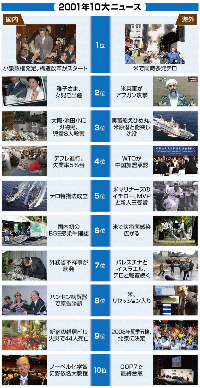 12/1 東北新幹線の盛岡一八戸間が開業 12/4 川崎協同病院でぜんそくから意識不明になった患者が筋弛緩剤を投与後に死亡した事件で、神奈川県警は主治医を殺人の疑いで逮捕 12/10 東大名誉教授の小柴昌俊がノーベル物理学賞、島津製作所の田中耕一が同化学賞のダブル受賞 12/11 98年夏にカレーを食べた住民ら4人が死亡した事件など8事件で殺人罪などに問われた林真須美被告に、和歌山地裁が死刑判決 12/16 テロ対策特別措置法による米軍支援のため、海上自衛隊のイージス艦「きりしま」が出産 12/19 韓国で慮武鉱が大統領に当選 12/25 民主党5人と旧保守党9人が保守新党を結成。代表に熊谷弘。自民、公明両党と3党連立体制を維持