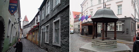![]() 世界遺産タリン旧市街は石畳の坂道が続く 人形が住んでいたという伝説の井戸 |