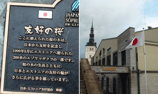 ![]() エストニア日本大使館前には桜が植えられている。 |