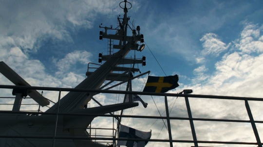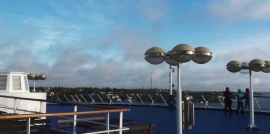 ヘルシンキ港沖の島々の間を抜けて一路スウェーデン・ストックホルムへは明日の朝9時到着。 16時間の船旅。 |