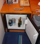 予約した部屋は11710号室DXルーム。 ツインベッドとテーブル、5本もフリードリンク付き、シャワー室もあり、四角の窓からは対岸の島が見える。 |