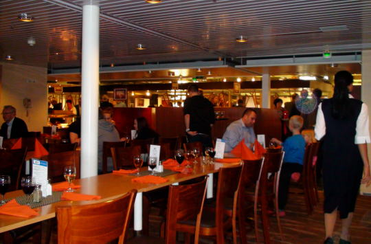 ディナーの予約時間は2部制だったのでもっと遅い20時からにすればよかったと少し後悔しながらデッキを下りて6階レストランへ。 |