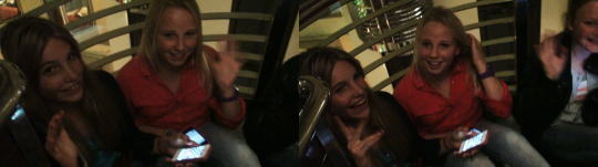 タリンクシリアラインシンフォニー号船内展望エレベーターに座り込んで遊ぶスウェーデン少女少女達。大勢エレベーターの乗降客にも意に介せず遊んでいる。マナー違反だがなぜかほほえましく感じてしまう。 |