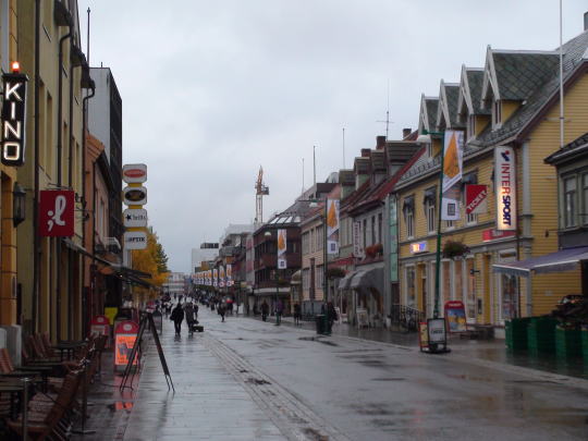 冷たい雨の降るトロムソだが、待ち行く人のほとんどが傘もささず歩いている。これにはちょっと驚く。学園都市といわれるだけあって若者の姿がとても多い。 |
