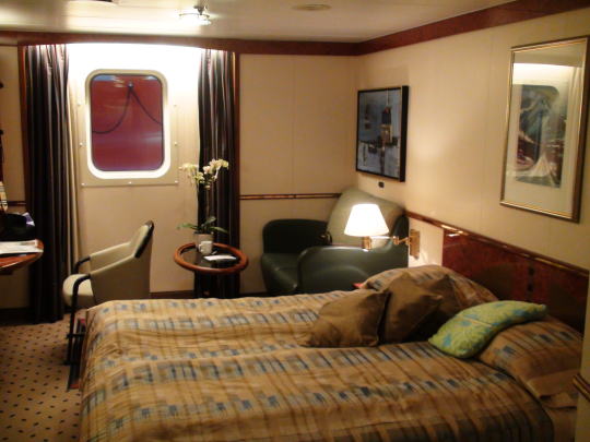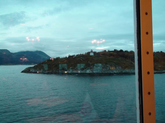 船に戻ってシャワーを浴びベッドに入る。 さすがに大型船でほとんど揺れを感じなかった。(2晩はそうだった) 沿岸急行船のクルーズで一番の景色といわれるロフォーテン諸島は残念なことに寝ているうちに通過していた。一日目夜オーロラは現れず。 |
