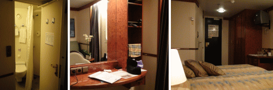 フッティルーテン(沿岸急行船)は12隻の船が上り下り毎日運航していて乗船した『フィンマルケン号』15,000㌧は3番目に大きな船で、新しく大きい『ミッドナットソル号』16,151㌧を希望していたが日程が合わず『フィンマルケン号』にした。Deck6(6階)のキャビン620に入る。 620キャビンはミニスィート、とはいえホテルとは違い全てがコンパクトで客室というよりキャビンというほうが似つかわしい。 |