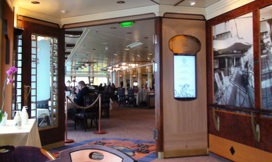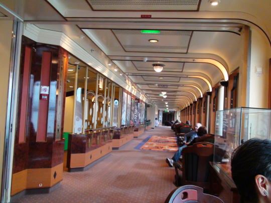 ![]() Deck4(4階)のレストラン。 Deck4(4階)レストランへの連絡通路。左はカフェ |
