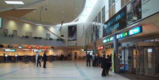 10:40分発の飛行機は2:2 4列の小型飛行機7A.B席。僅か1時間半のフライトで12:10分。あっという間にボードー空港到着。荷物をピックアップしてロビーにでると、オスロ空港で話した日本人婦人と一緒になりしばし立ち話。 |