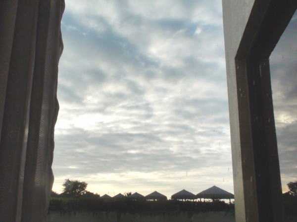30日島巡りの朝ベッドから見上げる空はどんより曇り空。