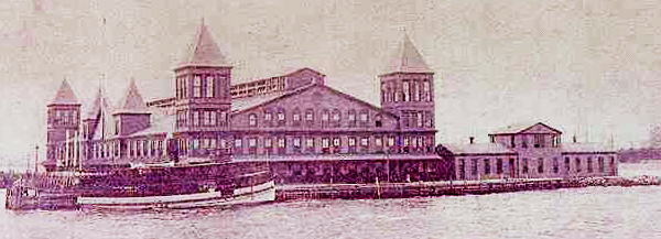 自由の女神 見学の後 帰りフェリーに乗って出航。途中エリス島に停泊したので下船して15分位見学する。