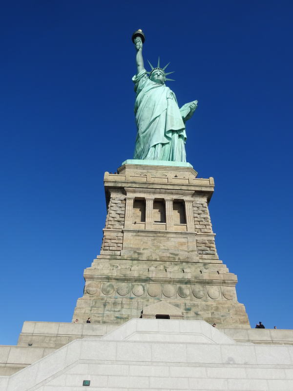 写真や映像では何度も見ている自由の女神像だがすぐ目の前に見上げるととても感動的。 |
