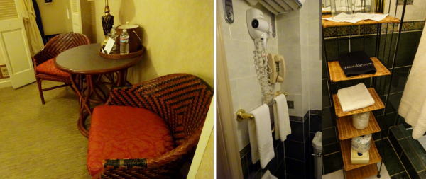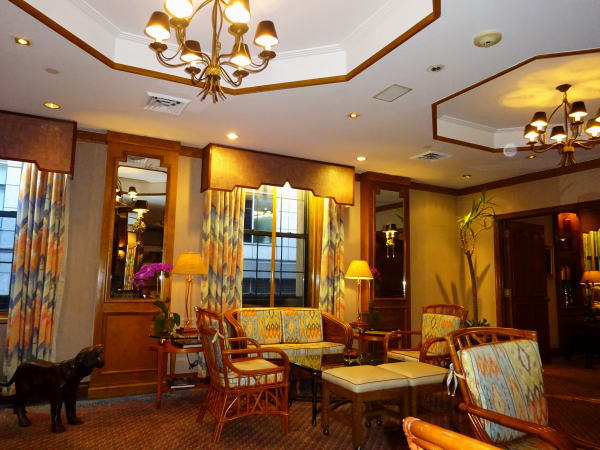 入口では制服姿のドアマンがクラシックなドアを開け丁重に中に導き入れレセプションへ。スタッフは皆とても笑顔が素敵でさすがニューヨークという感じ。 ベルボーイに案内された部屋は411号室。小さな部屋だが名前のイメージそのままで落ち着いた部屋。部屋の機能の説明をしたボーイにチップを渡し、荷物を整理する。一服して街にでようとフロント前を通るとスタッフから早々Mr.***と名前で呼び掛けられ送り出される。このおもてなしの心に少し嬉しい気持ちで初めてのニューヨーク街歩きに出発する。 |