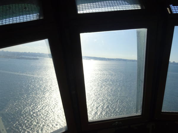 狭い空間なので、のんびりは出来ない。写真撮影して後ろから あがってくる人に窓際位置を譲って狭い螺旋階段を又下る。 |