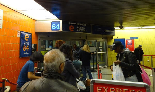 7:15ホテルを後にして42.stバスターミナルへ。ボストン行きの84番ゲイトはすでに長い行列ができていた。係員が来て予約票のチェックをして列の順番を入れ替え列の一番前に並び替えられた。予約日の順番なのかもしれない。