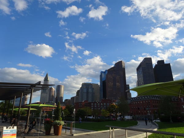 フリーダムトレイル(12)から(13)途中のノース・エンドパークから見るボストン市街。 |