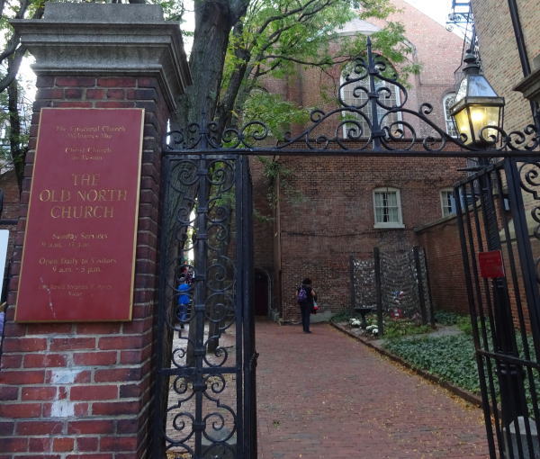 オールドノース教会は独立戦争の始まった日イギリス軍の奇襲を察知したポール・リビアが、教会の尖塔に2つのランタンを掲げるよう指示し、暗闇の中、レキシントンへ早馬を走らせコンコードに知らせる重要な役割を果たした場所。これが有名な「真夜中の騎行」と言われている。 |